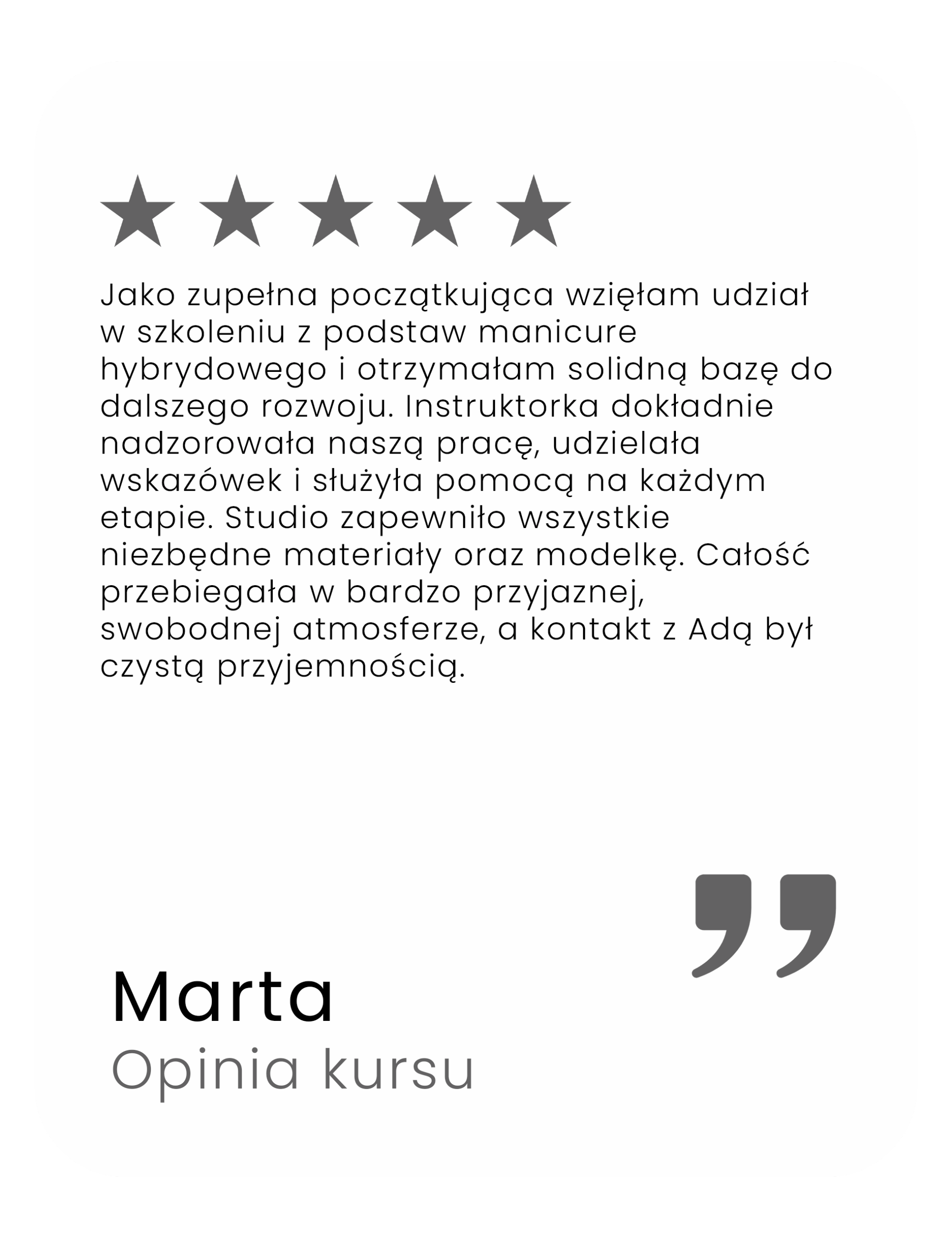Moje kochane, te kursy są dla każdej z Was – bez względu na to, czy dopiero zaczynacie przygodę z paznokciami, czy już coś próbowałyście i chcecie w końcu robić to dobrze i bezpiecznie. Uczę od podstaw, z pełnym wsparciem, cierpliwością i sercem!